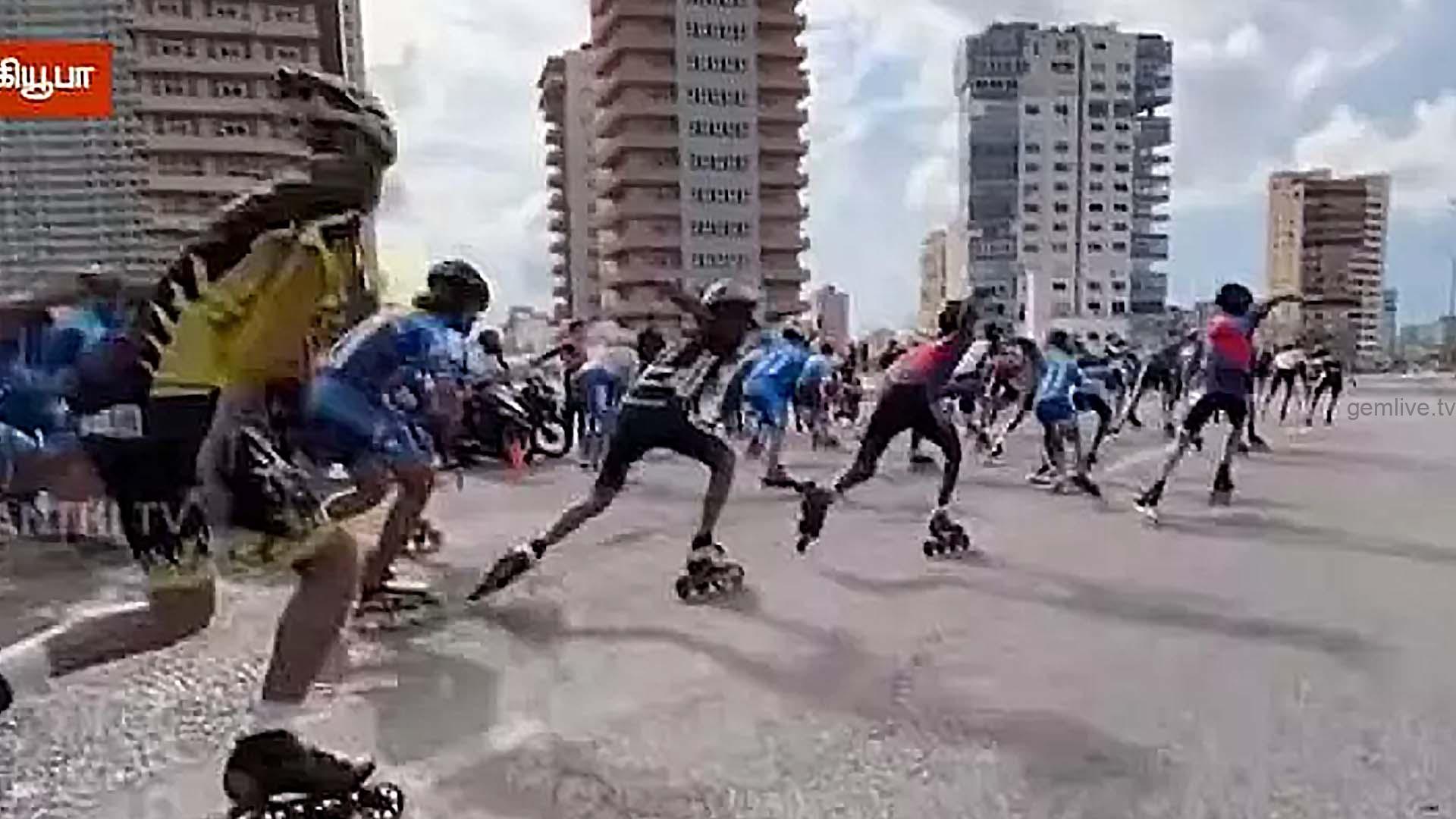 அந்த வகையில், ஹவானா நகரின் கடற்கரை சாலையில் மாபெரும் ஸ்கேட்டிங் மாரத்தான் போட்டி நடத்தப்பட்டது. இதில் நூற்றுக்கணக்கான சிறுவர், சிறுமிகள் பங்கேற்று ஸ்கேட்டிங் செய்து அசத்தினர். சுமார் 42 கி.மீ. தூரத்தை இலக்காக கொண்டு இந்த ஸ்கேட்டிங் மாரத்தான் நடத்தப்பட்டது. இதனை கண்டு ரசித்த பார்வையாளர்கள், போட்டியாளர்களை உற்சாகப்படுத்தினர். ஸ்கேட்போர்டிங், ஸ்பின்னிங், ஸ்கேட்கிராஸ் மற்றும் ஸ்பீட்ஸ்கேட்டிங் உள்ளிட்ட பிரிவுகளிலும் போட்டிகள் நடத்தப்பட்டது குறிப்பிடத்தக்கது.