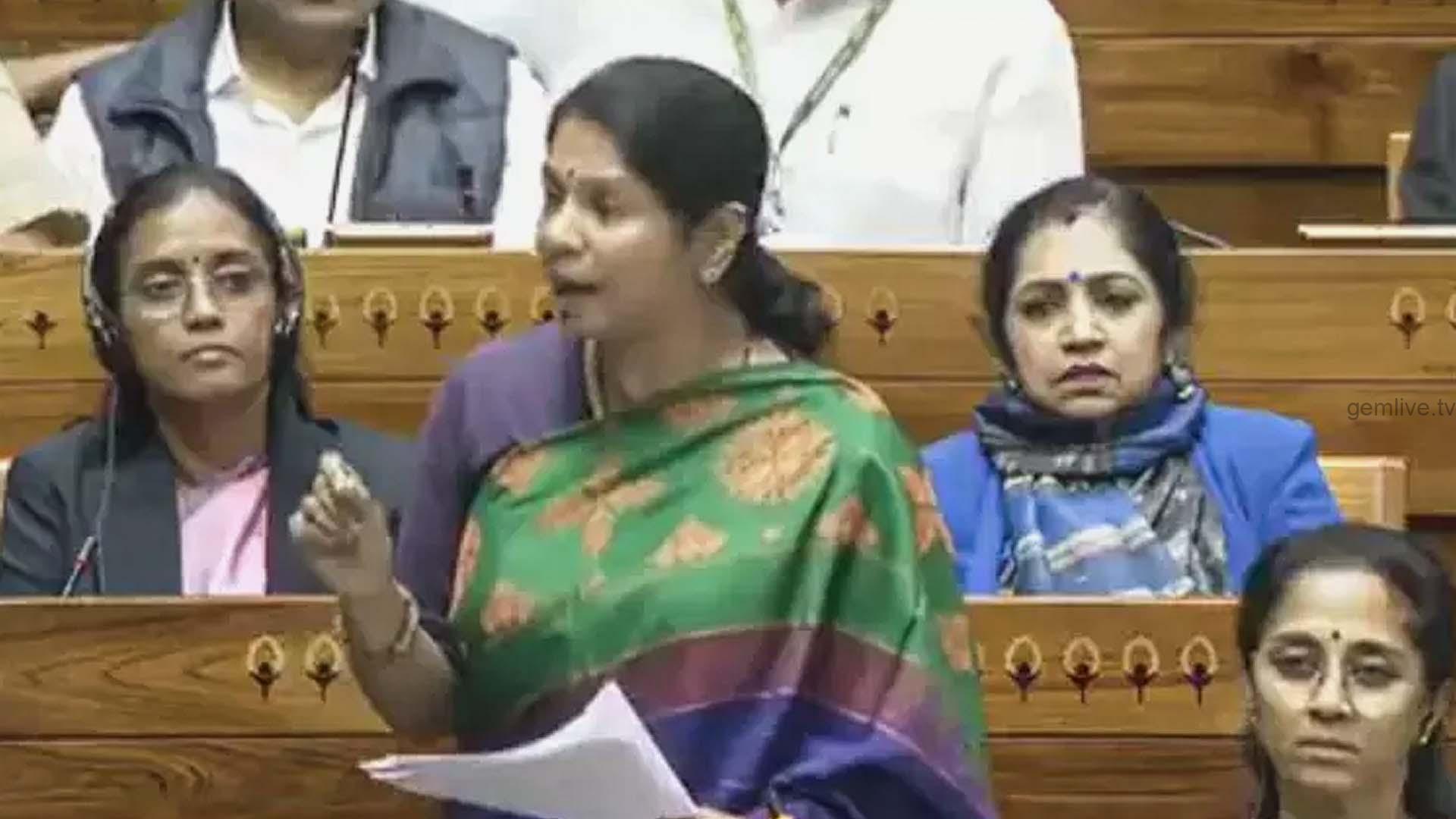 தில்லியில் உள்ள நாடளுமன்ற மக்களவையில் மத்திய அரசின் 125 நாள் வேலைக்கான ரோஜ்கர்-அஜிவீகா திட்ட மசோதா மீதான விவாதம் நடைபெற்றது. இந்த தீர்மானம் குறித்து தி.மு.க. நாடளுமன்ற உறுப்பினர் கனிமொழி பேசியபோது, தொழிலாளர்களுக்கு எதிராக கொண்டு வரப்பட்டுள்ள இந்த மசோதாவை முற்றிலுமாக எதிர்ப்பதாகவும் பழைய 100 நாள் வேலை திட்டத்தின் பெயரிலேயே வேலைக்கு உறுதி இருந்தது என்று தெரிவித்தார். தொடர்ந்து பேசிய நாடளுமன்ற உறுப்பினர் கனிமொழி, பிரதமரின் வீடு கட்டும் திட்டத்தில் மாநிலங்களாகிய நாங்கள் 61 சதவீதத்தை கொடுப்பதாகவும் மத்திய அரசு 39 சதவீதம் தான் தருகிறது என்றார். இதையடுத்து, மத்திய அரசு திட்டங்கள் எல்லாவற்றின் பெயரும் ஆங்கிலம் மற்றும் இந்தியிலேயே இருக்கிறது என்றும் தமிழ், மலையாளம், தெலுங்கு அல்லது மராத்தி போன்ற வேறு பிராந்திய மொழிகளில் ஏன் வைக்கப்படுவதில்லை எனக் கேள்வி எழுப்பியுள்ளார்.