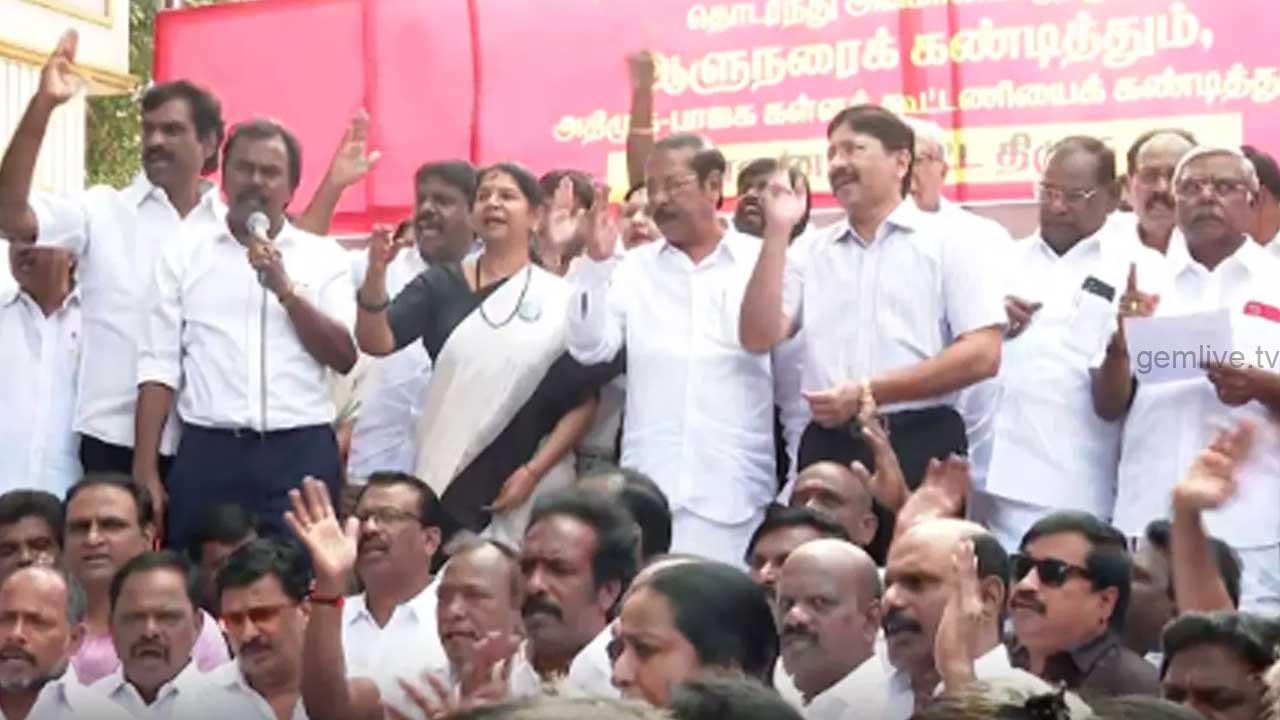 தமிழ்நாட்டையும் தமிழ்த்தாய் வாழ்த்தையும் தொடர்ந்து அவமானப்படுத்தும் ஆளுநர் ஆர்.என்.ரவியை கண்டித்தும், ஆளுநரைத் திரும்பப் பெற வலியுறுத்தியும் இன்று அனைத்து மாவட்ட தலைநகரங்களிலும் தி.மு.க. கண்டன ஆர்ப்பாட்டம் நடத்தி வருகிறது.