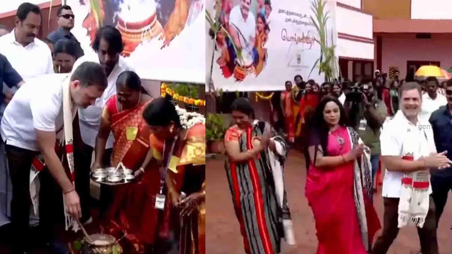 இதை தொடர்ந்து ராகுல்காந்தி கூடலூரில் உள்ள புனித தாமஸ் பள்ளியின் பொன்விழா கொண்டாட்டத்தில் பங்கேற்று பொங்கல் வைத்தார். அப்போது ராகுல் காந்தி தோடர் பழங்குடியின மக்களுடன் சேர்ந்து பாரம்பரிய நடனமாடியும் மகிழ்ந்தார்.