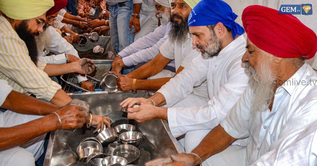 பஞ்சாப் மாநிலத்தில் அமைந்துள்ள அமிர்தசரஸ் பொற்கோயிலில் ராகுல் காந்தி சேவை செய்து வழிபாடு செய்துள்ளார்.
