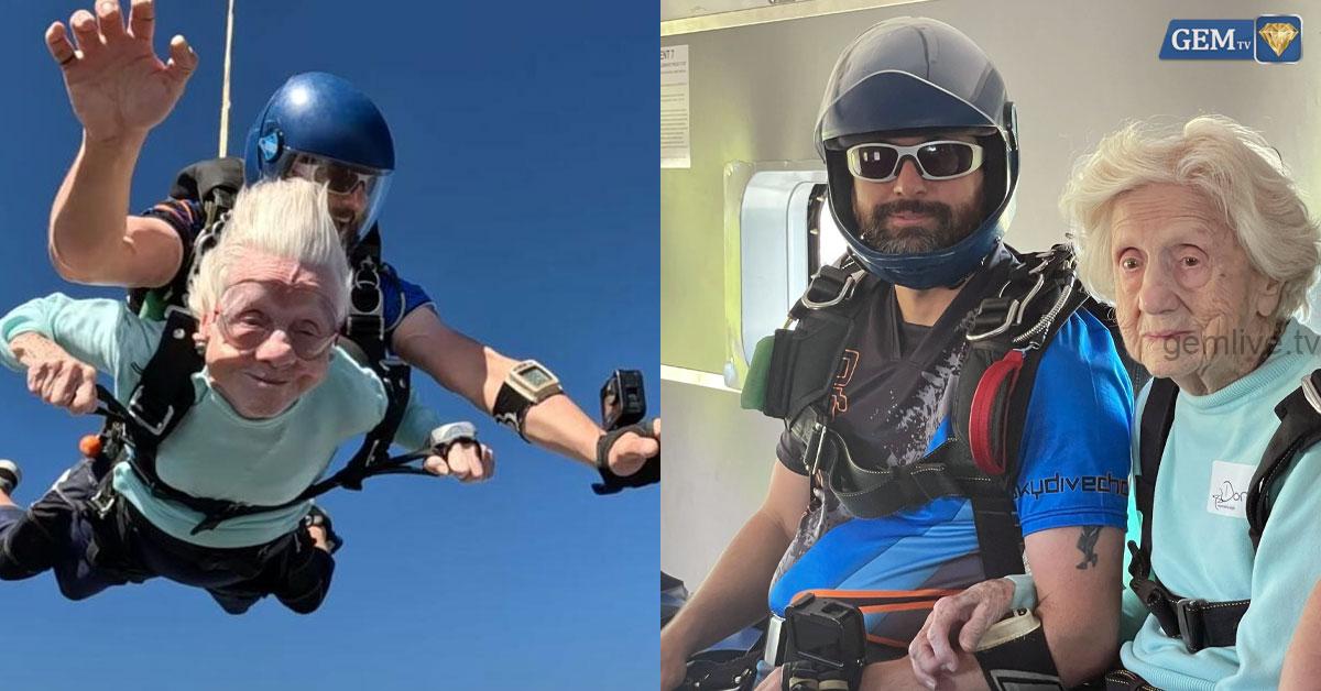 104 வயது மூதாட்டி கின்னஸ் உலக சாதனைக்காக ஸ்கை டைவிங் செய்தது தொடர்பான வீடியோ இணையத்தில் வைரல் ஆகி வருகிறது.