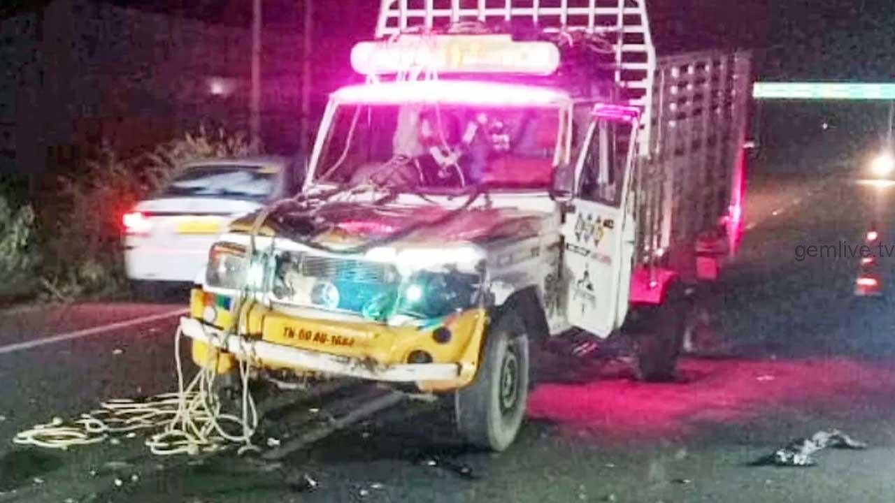 இதில் தூக்கி வீசப்பட்ட ராஜேந்திரன் மற்றும் அவரது மகன் வீரமுத்து ஆகியோர் படுகாயம் அடைந்து சம்பவ இடத்திலேயே துடிதுடித்துப் பலியாகினர். இதைப் பார்த்ததும் சரக்கு வாகன டிரைவர் அங்கிருந்து தப்பி ஓடிவிட்டார்.
