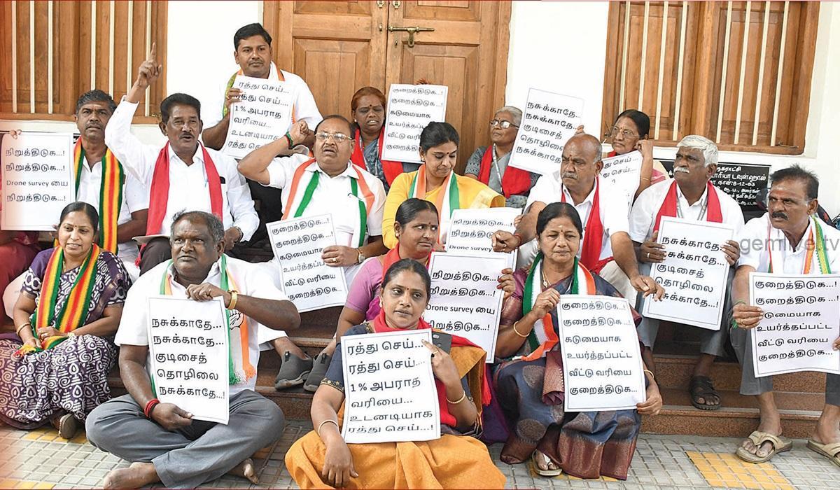 கோவை மாநகராட்சியின் மாமன்றக்கூட்டம் அண்மையில் நடந்தது. இதில் வழக்கம் போல் அதிமுக கவுன்சிலர்கள் மூன்று பேரும் கூட்டம் தொடங்கியதுமே மாநகராட்சியை கண்டித்து போராட்டத்தில் ஈடுபட்டனர். ட்ரோன் மூலம் சர்வே செய்து சொத்து வரி விதிப்பதை தடைசெய்ய வேண்டும், உயர்த்தப்பட்ட சொத்துவரியை ரத்து செய்ய வேண்டும் உள்ளிட்ட கோரிக்கைகளை முன்வைத்து அவர்கள் போராட்டம் நடத்தினர்.